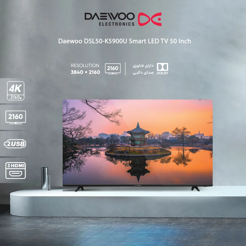 تلویزیون ال ای دی هوشمند دوو مدل DSL-50K5900U سایز ۵۰ اینچ 4K اندرویدDAEWOO-DSL-50K5900U